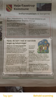 Nu vises det skannede og du får nogen muligheder for at rette “skanningsfeltet” til ved at flytte på området så det passer. Enten Behold skanning og tag igen.