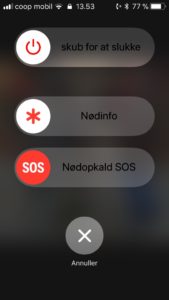 Vælger man SOS vil iPhonen lave et opkald til alarmcentralen og sende en besked til de personer der er tilføjet Nødopkald.